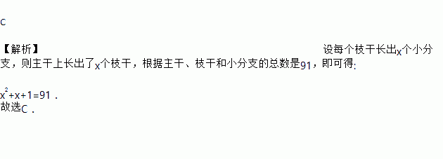 某种植物的主干长出若干数目的枝干,每个枝干又长出同样数目的小分支,主干、枝干和小分支的总数是设每个枝干长出x个小分支,则x满足的关系式为
