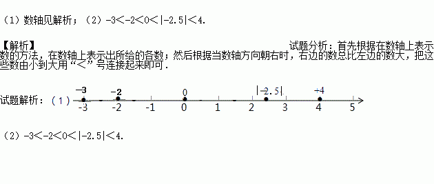 画出数轴并按要求答题:在数轴上表示下列有理数:﹣3,|﹣2.5|,+4,﹣(+2),0;再用“<”将它们连接起来: