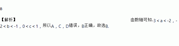 B 【解析】由数轴可知-3<a<-2,-2<b<-1,0<c<1,所以A,C,D错误,B正确,故选B.