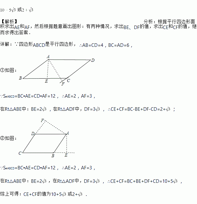 在面积为12的平行四边形ABCD中,过点A作直线BC的垂线交BC于点E,过点A作直线CD的垂线交CD于点F,若,则的值为______.
