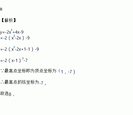 二次函数y=-2x2+4x-9的最高点的纵坐标是( )