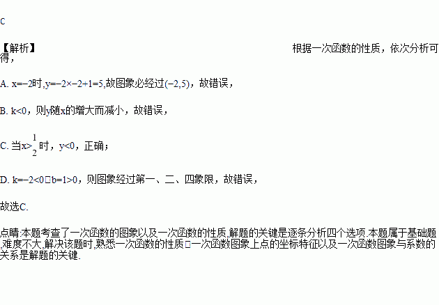 关于函数y=﹣2x+1,下列结论正确的是( )