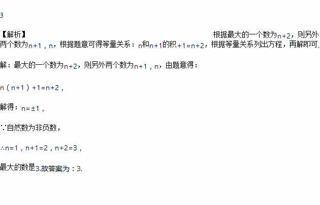 有三个连续的自然数,已知其中最大的一个数比另外两个数的积还大1,那么这个最大的数是___.