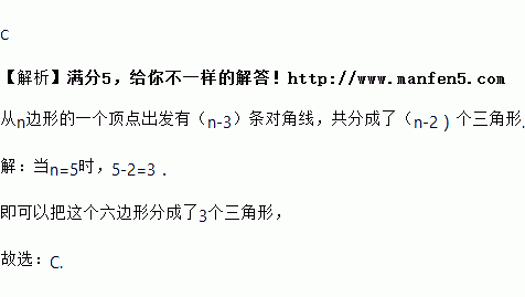 从五边形的一个顶点出发的对角线,把这个五边形分成( )个三角形.