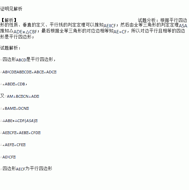 如图,在?ABCD中,过点A作AM⊥BC于点M,交BD于点E,过点C作CN⊥AD于点N,交BD于点F,连接AF,CE.求证:四边形AECF为平行四边形.