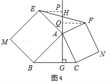 £¨3£©Èçͼ4£¬¡÷ABCÖУ¬AG¡ÍBCÓÚµãG£¬·Ö±ðÒÔAB¡¢ACΪһ±ßÏò¡÷ABCÍâ×÷¾ØÐÎABMEºÍ¾ØÐÎACNF£¬ÉäÏßGA½»EFÓÚµãH£®ÈôAB=kAE£¬AC=kAF£¬ÊÔ̽¾¿HEÓëHFÖ®¼äµÄÊýÁ¿¹ØÏµ£¬ËµÃ÷ÀíÓÉ£®