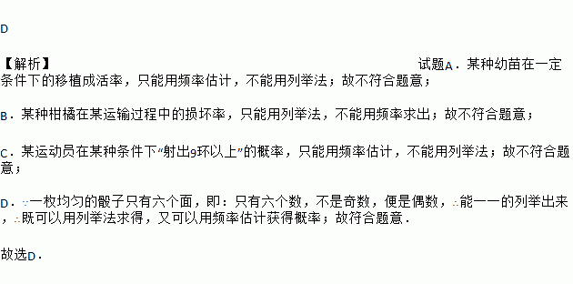 下列随机事件的概率,既可以用列举法求得,又可以用频率估计获得的是( )
