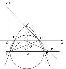 分析:(1)已知了A点坐标,即可得出圆的半径和OD的长,连接AB,过A作BC的垂线不难求出B、C的坐标.然后可用待定系数法求出抛物线的解析式.
