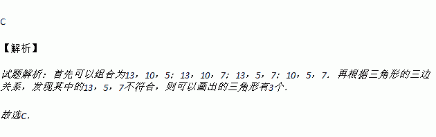 以长为13cm、10cm、5cm、7cm的四条线段中的三条线段为边,可以画出三角形的个数是( )
