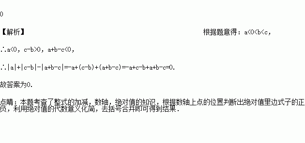 如图,数轴上点A、B、C所对应的数分别为a、b、c,化简|a|+|c﹣b|﹣|a+b﹣c|=__.