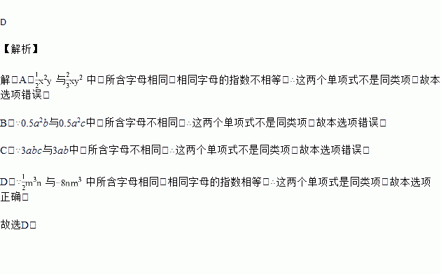 A. 与 B. 0.5a2b与0.5a2c C. 3abc与3ab D. 与-8nm3