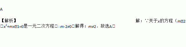 A 【解析】【解析】 ∵关于x的方程(m﹣2)x2+mx﹣1=0是一元二次方程,∴m-2≠0,解得:m≠2.故选A.