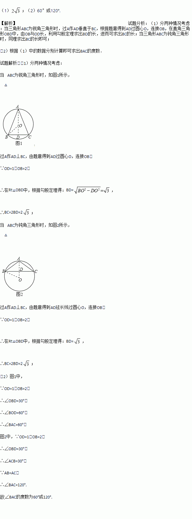 是⊙的内接三角形, .⊙的半径为, 到的距离为.