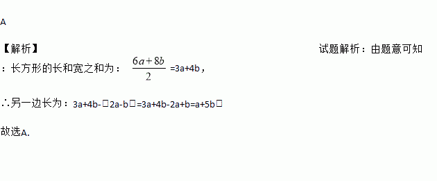 一个长方形的周长为6a+8b,其中一边的长为2a-b,则另一边的长为( )