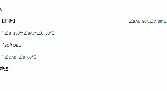 如图,一块含角的直角三角板ABC的直角顶点A在直线DE上,且BC∥DE,则等于( )