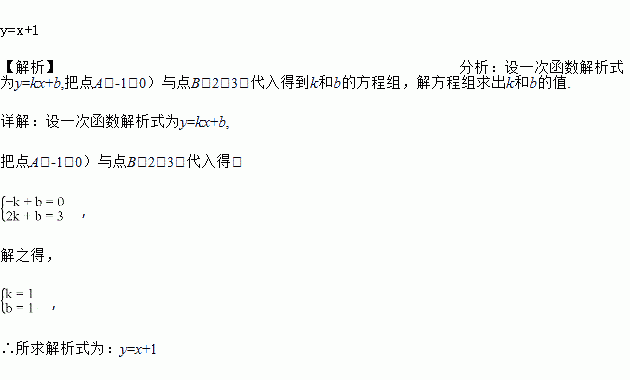 如图,已知直线经过点A(-1,0)与点B(2,3),求直线对应函数的解析式.