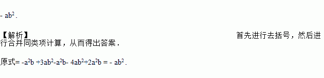 化简:-a2 b +(3ab2-a2b)- 2(2ab2-a2b)