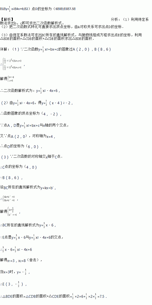 +bx+c的图象交x轴于A、D两点,并经过B点,已知A点坐标是(2,0),B点的坐标是(8,6).