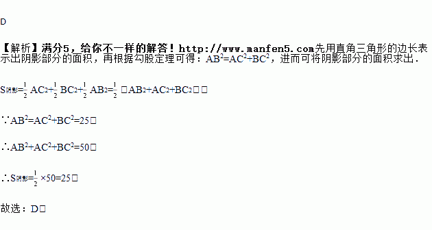 如图,以Rt△ABC的三边为直角边分别向外作等腰直角三角形.若AB=5,则图中阴影部分的面积为( )