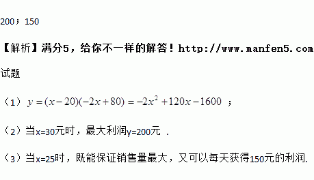 (3)在保证销售量尽可能大的前提下,该商场每天还想获得150元的利润,应该将销售单价定为多少元?