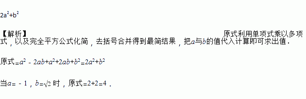 先化简,再求值:a(a﹣2b)+(a+b)2 , 其中a=﹣1,b=.
