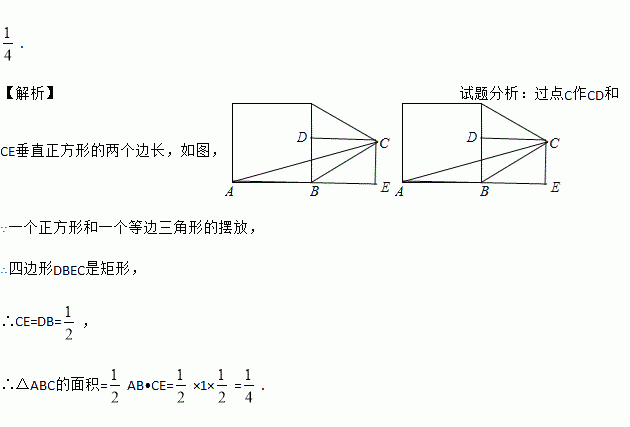 边长为1的一个正方形和一个等边三角形如图摆放,则△ABC的面积为 .