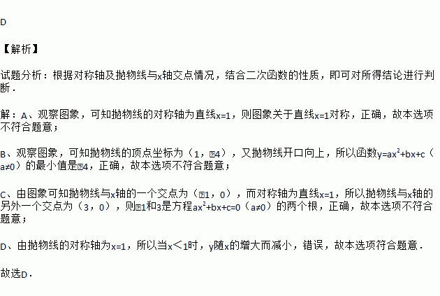 已知二次函数y=ax2+bx+c(a≠0)的图象如图所示,下列说法错误的是( )