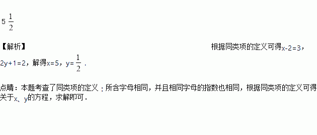 若代数式与是同类项,则x=____,y=____.