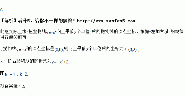 已知抛物线y=ax2﹣k是由抛物线y=﹣x2向下平移2个单位得到的,则a、k的值分别是( )
