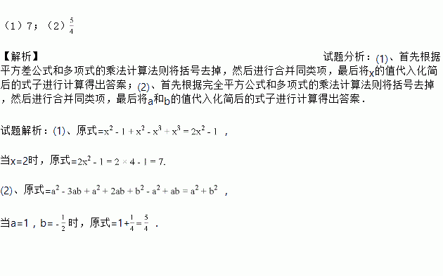 (1) (x+1)(x-1)+x2(1-x)+x3,其中x=2;