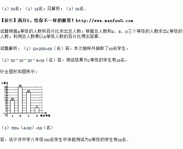 (3)若该中学八年级共有700名学生,请你估计该中学八年级学生中体能测试结果为D等级的学生有多少名.