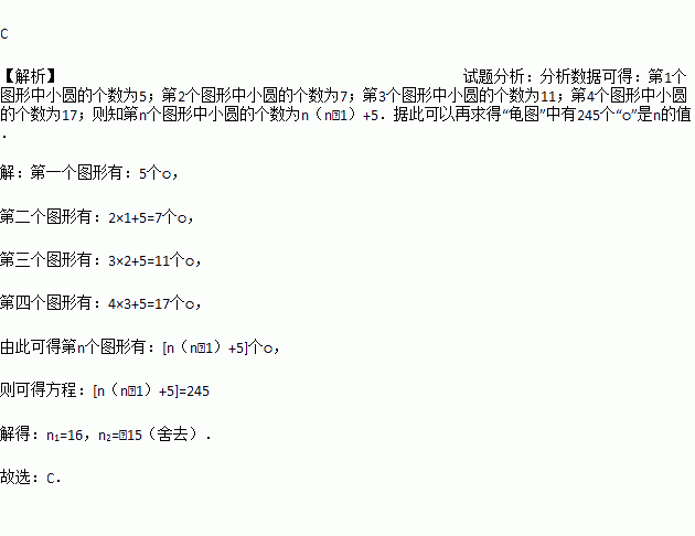 将一些相同的“○”按如图所示的规律依次摆放,观察每个“龟图”中的“○”的个数,若第n个“龟图”中有245个“○”,则n=( )