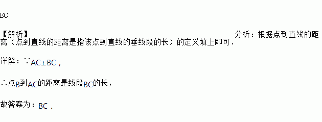 已知如图:AC⊥BC,CD⊥AB,则点B到AC的距离是线段________ 的长.
