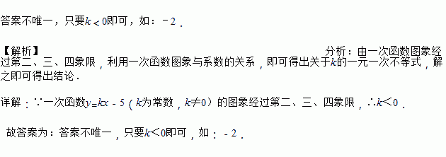已知一次函数y=kx﹣5(k为常数,k≠0)的图象经过第二、三、四象限,写出一个符合条件的k的值为_____