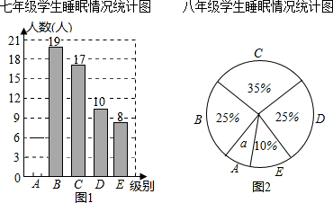 (1)此次调查抽取样本容量是120;七年级学生睡眠时间在A组的有6人;并补全七年级学生睡眠情况统计图;