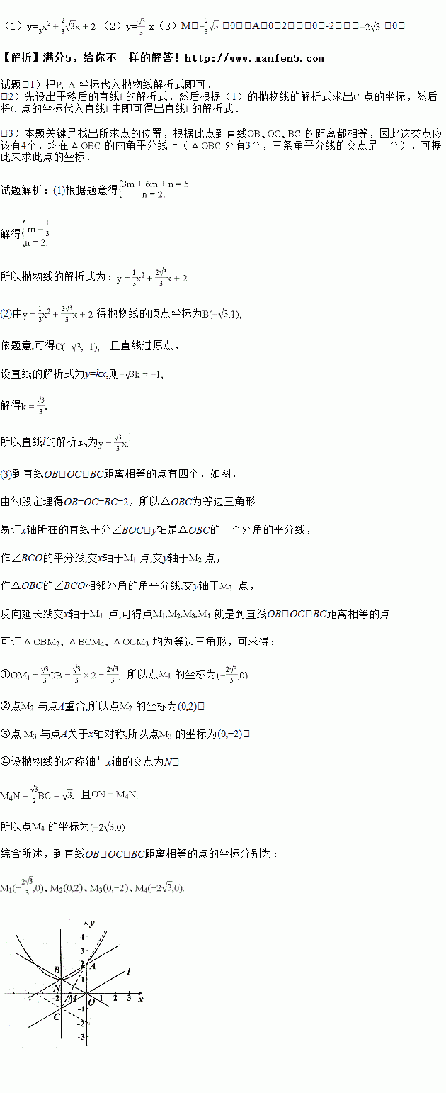 (3)在(2)的条件下,求到直线距离相等的点的坐标.![]()