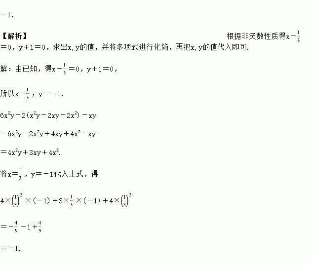 +(y+1)2=0,求6x2y-2(x2y-2xy-2x2)-xy的值.