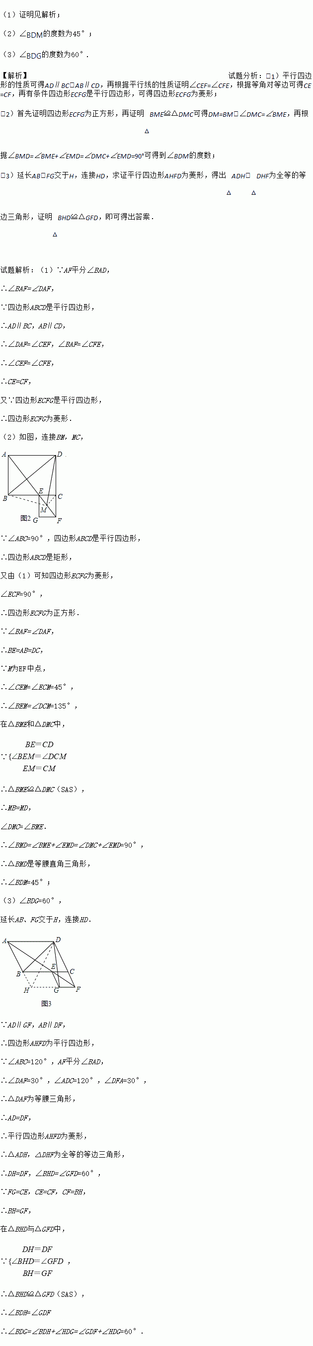 (1)如图1,证明平行四边形ECFG为菱形;