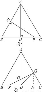 (3)根据三角形的面积公式,要证明AD平分△PQD的面积,只需证明O是PQ的中点.根据题意可以证明BP=CN,则PD=DN,再根据平行线等分线段定理即可证明;