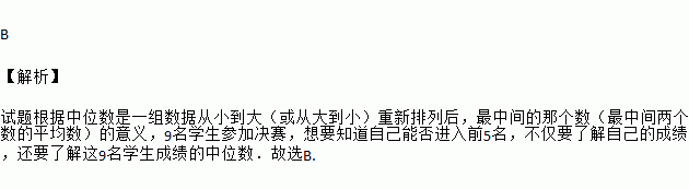 在某校“我的中国梦”演讲比赛中,有9名学生参加决赛,他们决赛的最终成绩各不相同.其中的一名学生想要知道自己能否进入前5名,不仅要了解自己的成绩,还要了解这9名学生成绩的( )