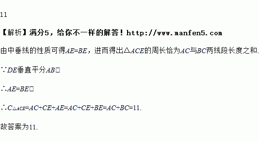如图,中,边AB的垂直平分线分别交AB、BC于点D、E,连接若,,则的周长为______.