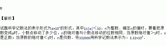 据《南国早报》报道:2016年广西高考报名人数约为332000人,创历史新高,其中数据332000用科学记数法表示为( )