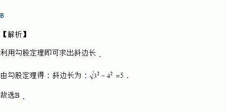 直角三角形两条直角边的长分别为3和4,则斜边长为( )