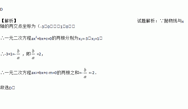 二次函数的图象如图所示,那么一元二次方程为常数且的两根之和为