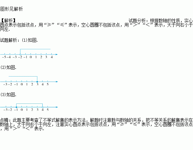 (1)x>-2. (2)x≤3. (3)-1≤x<4.