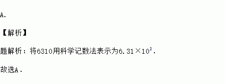 2015年1-3月,全国网上商品零售额6310亿元,将6310用科学记数法表示应为( )