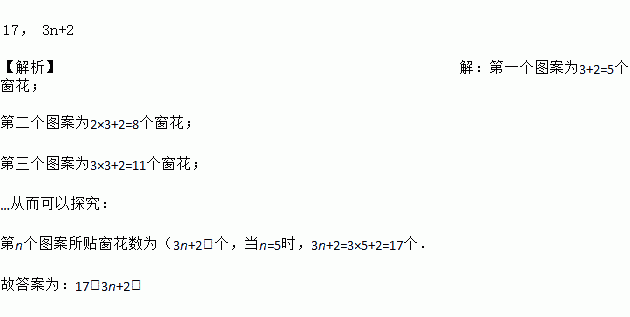下列图案是我国古代窗格的一部分,其中“○”代表窗纸上所贴的剪纸,则第5个图中所贴剪纸“○”的个数为__________ ,第个图中所贴剪纸“○”的个数为__________.