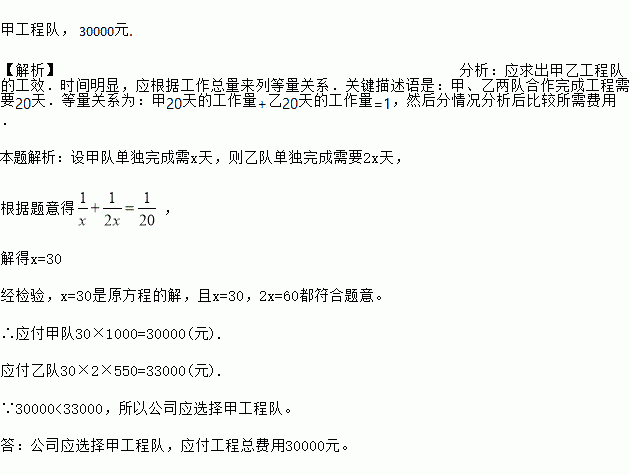 元.根据以上信息,从节约资金的角度考虑,公司应选择哪个工程队、应付工程队费用多少元?