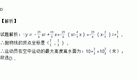 如图,某运动员在10 m跳台跳水比赛时估测身体(看成一点)在空中的运动路线是抛物线y=-