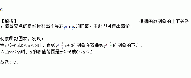 交于A(2,m)、B(﹣6,n)两点.则当y1<y2时,x的取值范围是( )